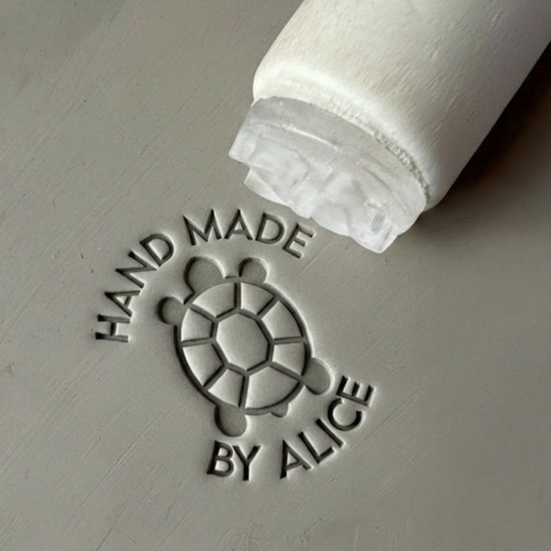 En acrylique transparent, il est résistant et vous permet de tampon facilement vos objets en céramique
